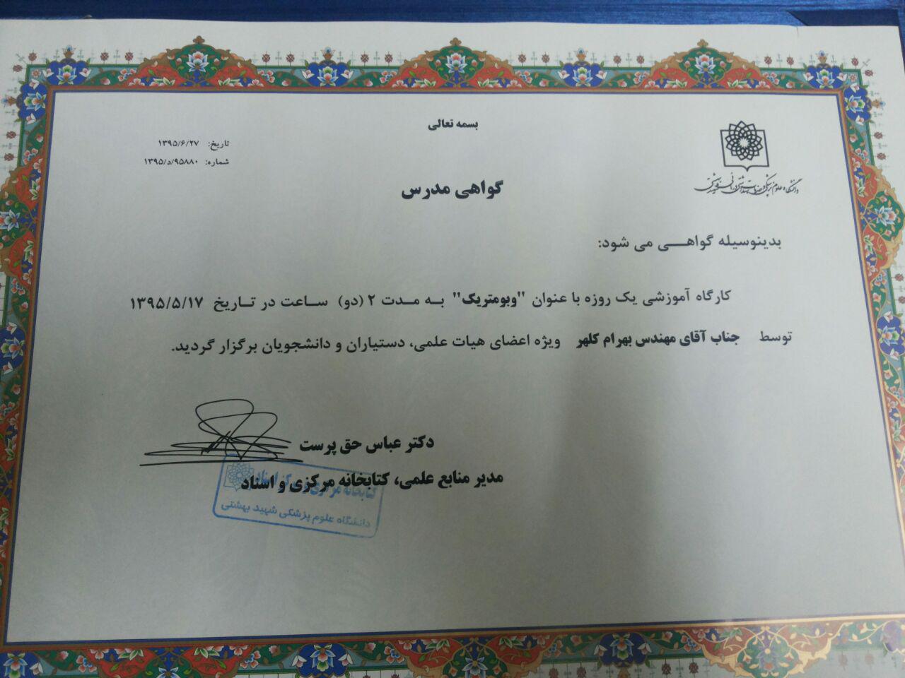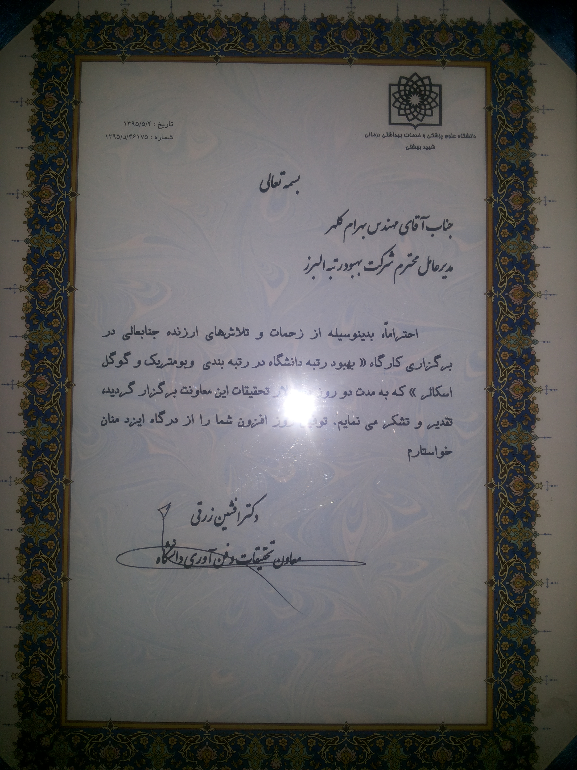 | دریافت تقدیرنامه از دانشگاه آزاد اسلامی واحد کرج | اخذ تقدیرنامه از دانشگاه علوم پزشکی شهید بهشتی |